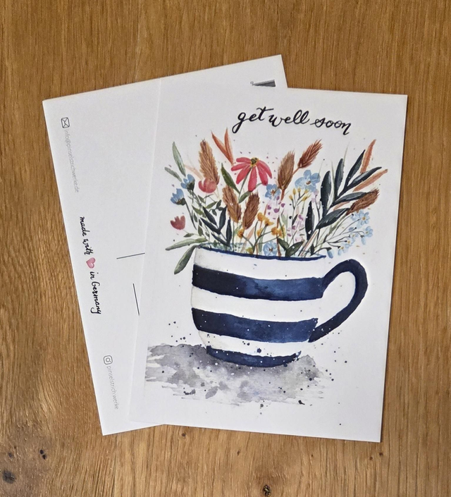 Postkarte "get well soon" | Kunstdruck DIN A6 300g | Handgemalte Grußkarte & liebevolle Deko |